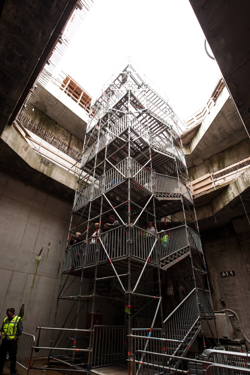 高所恐怖症の私にとっては、何十メートルも地下に下る工事用の階段を行くのは決死の覚悟だったが貴重な光景を見ることができた。