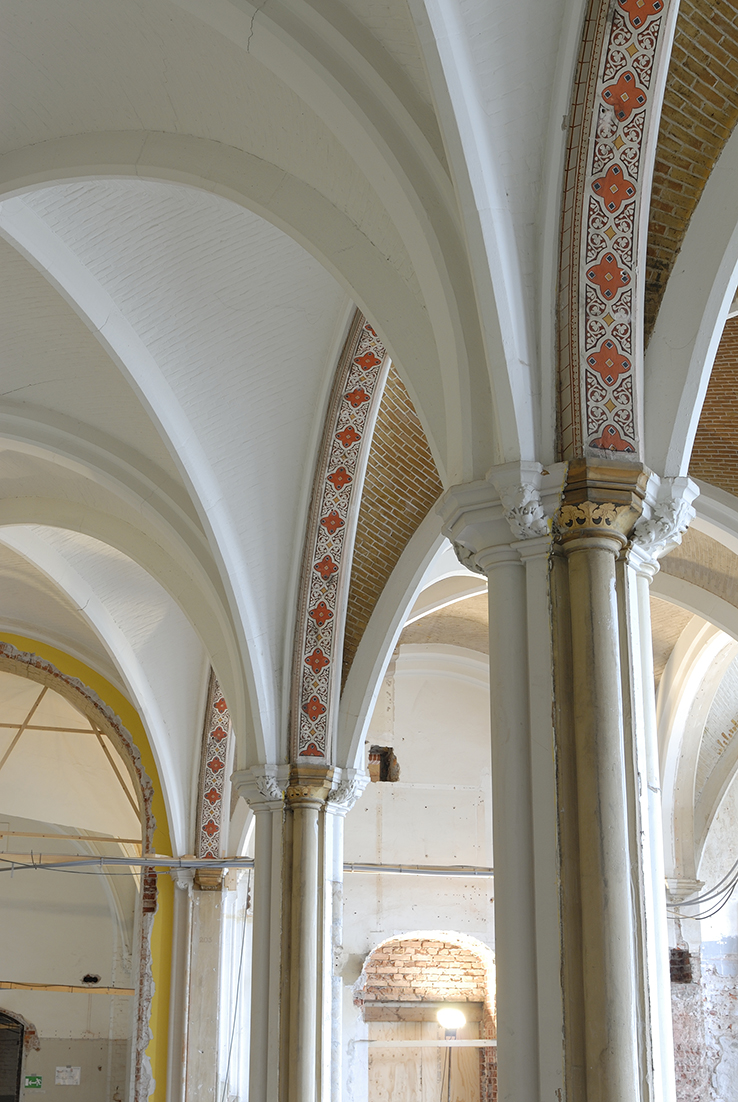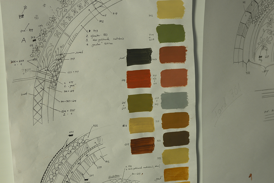 この美術館を設計したピエール・カウペルスは、建築だけではなく、庭園や館内の装飾まで自ら手がけていた。だが、1950年代、アートシーンはミニマリズムに移行。天井や壁の豪華の装飾は、白いペンキで塗りつぶされたのである。