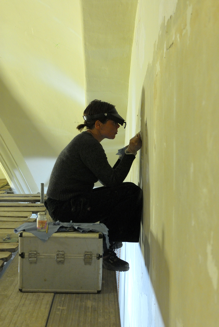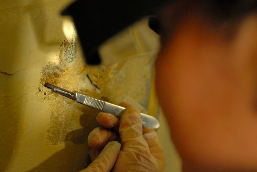 その白いペンキを、学生たちは小さなメスで丁寧に剥がし、元の絵を復元させていた。