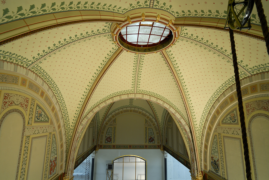 そんな思い出があるため、リニューアルオープンで私が一番感激したのは、落ちついた色味ながらも鮮やかな壁画と天井画を見た時だった。取材の時に見た大勢の学生たちの汗と涙(?)の結晶に、思わず涙腺が緩んだ。
