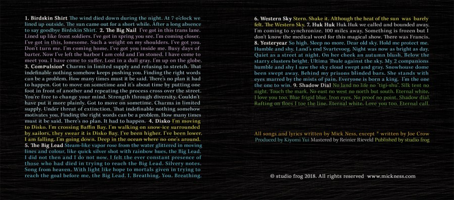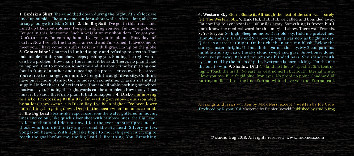 A concept album based on a theme that Ness deeply admires, polar expeditions of the early 20th century. DISKO is a name of an island in Greenland which was important transit point for those expeditions to the North Pole. A successor of the first album on his own label “Madhouse Promenade”.